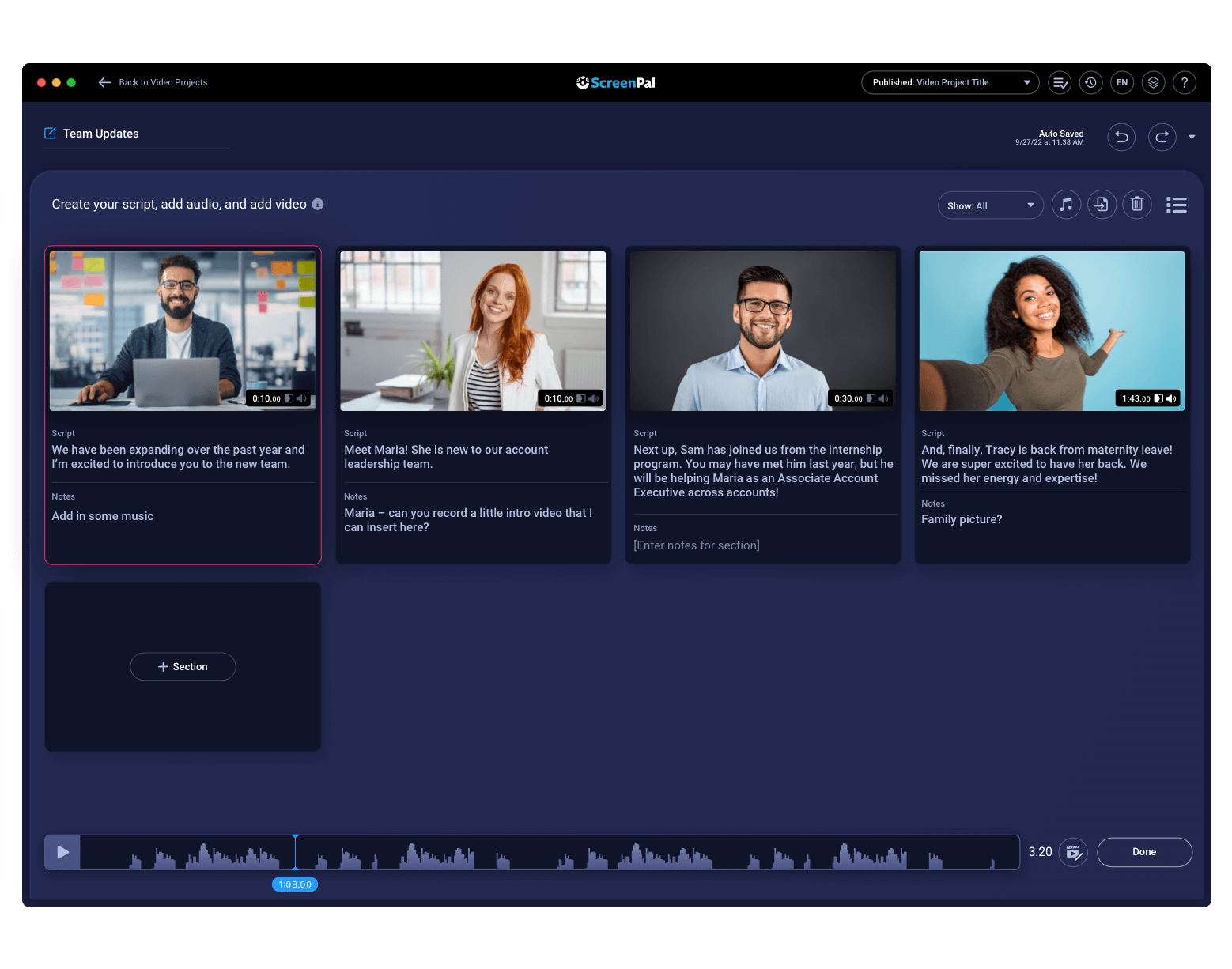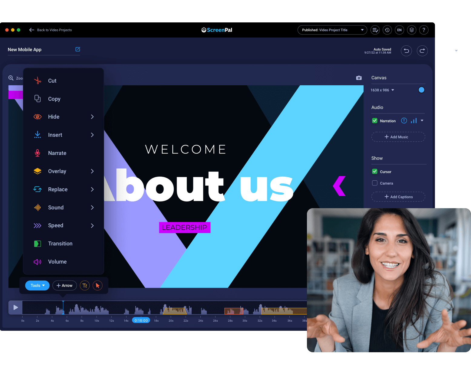 ScreenPal is a screen capture and video service, taking visual collaboration to the next level. It allows individuals, learning institutions, and companies to create video solutions for learning and collaboration.